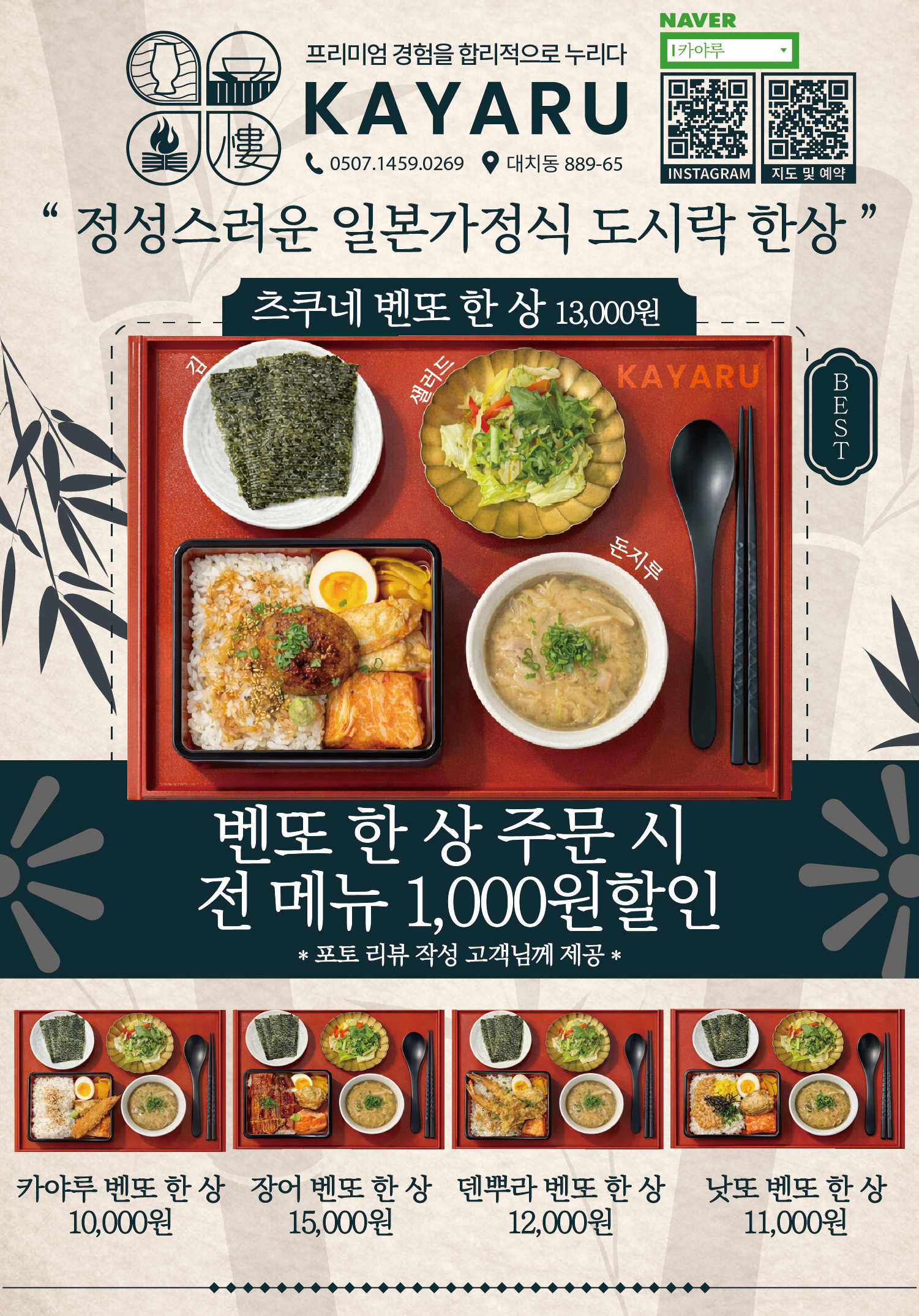 카야루는 혼술을 즐기는 고객을 위한 혼술 공간을 마련하고 있으며,